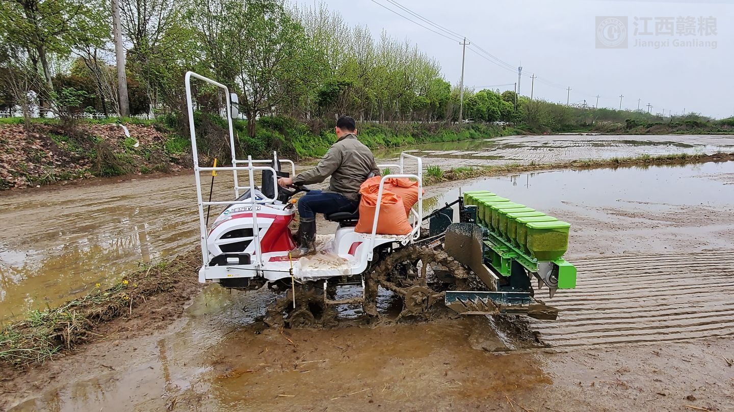 | 一年之計(jì)在于春”。對(duì)于農(nóng)業(yè)生產(chǎn)而言,錯(cuò)過(guò)了農(nóng)時(shí)就難以獲得好的收成。2020年04月02日,贛糧公司院士工作站岡上基地再生稻示范田里一片繁忙的景象,一大早農(nóng)機(jī)手們駕駛著滿(mǎn)載稻種的水稻穴直播機(jī),在水田里縱橫游走,隨著一聲聲的機(jī)械轟鳴聲,一排排再生稻種子整齊有序的被播入播種溝種。從種子浸種、消毒、催芽一直到播種全部按標(biāo)準(zhǔn)化進(jìn)行。盡管受到疫情沖擊,再生稻課題組依然抓住了早春的農(nóng)時(shí),及時(shí)復(fù)耕。示范的品種是謝華安院士團(tuán)隊(duì)選育的秈型中稻雜交稻品種“內(nèi)6優(yōu)7075”,播種機(jī)采用的是羅錫文院士團(tuán)隊(duì)研發(fā)的2BDXS-10CP型水稻精量穴直播機(jī),農(nóng)機(jī)與農(nóng)藝相融合,期待著秋的收獲。 |