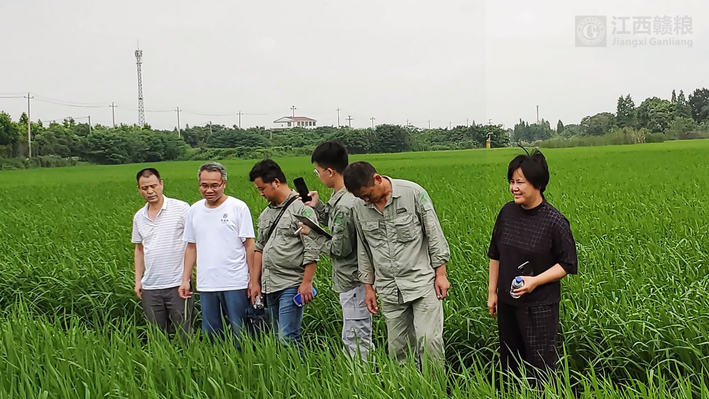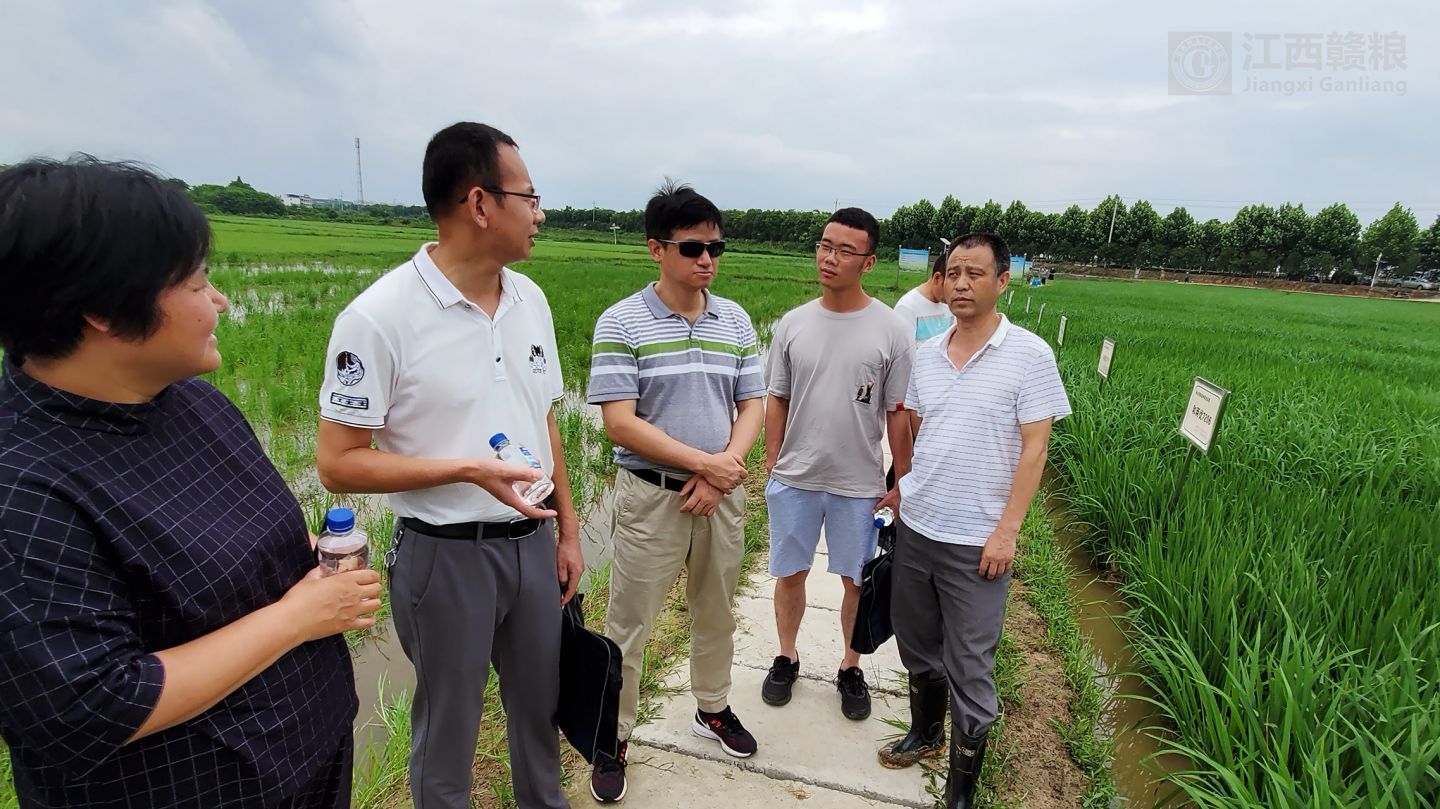 2020年06月10日,南昌縣農(nóng)業(yè)農(nóng)村局農(nóng)技站站長(zhǎng)胡友發(fā)、植保站站長(zhǎng)劉方義、種子站副站長(zhǎng)萬禮根以及產(chǎn)業(yè)科科長(zhǎng)萬浪華等專家一行到贛糧公司院士工作站岡上基地進(jìn)行農(nóng)技指導(dǎo),專家一行深入田間仔細(xì)觀察水稻長(zhǎng)勢(shì),對(duì)不同品種的水稻提出了不同的管理建議。特別是對(duì)基地水稻夏季病蟲害的綜合防治提出了寶貴意見。